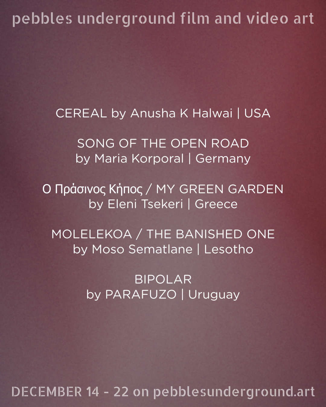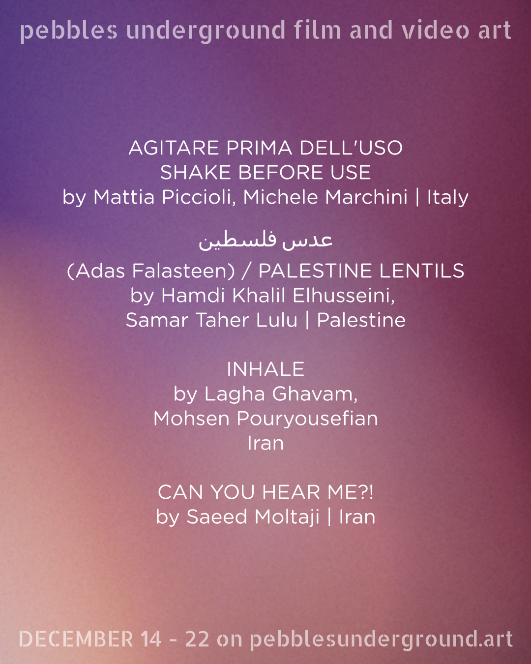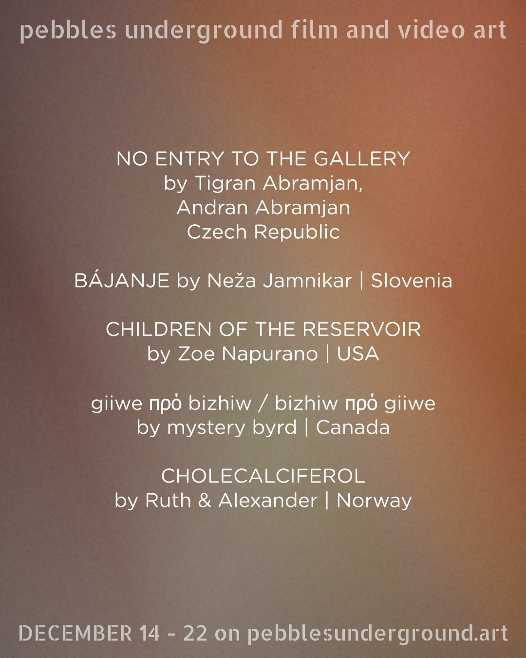 While our team is working hard to prepare the Winter 2025 screening on our website, take a look at the final official selection in our Winter 2025 edition comprising 58 films from 34 countries! On air December 14-22 on pebblesunderground.art, more info on programs coming soon!