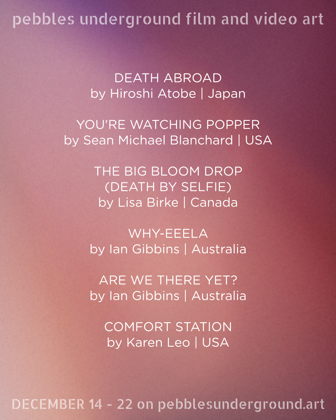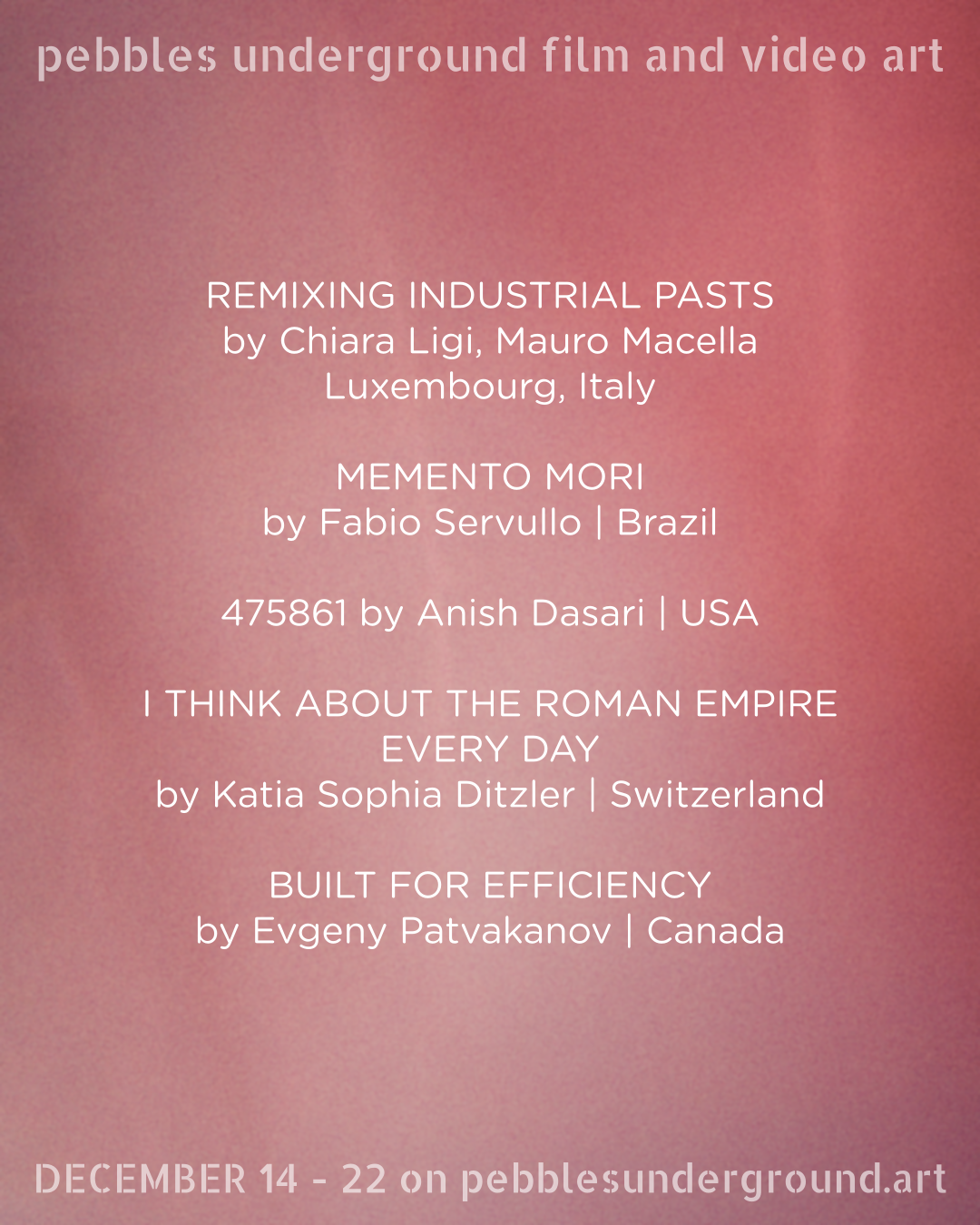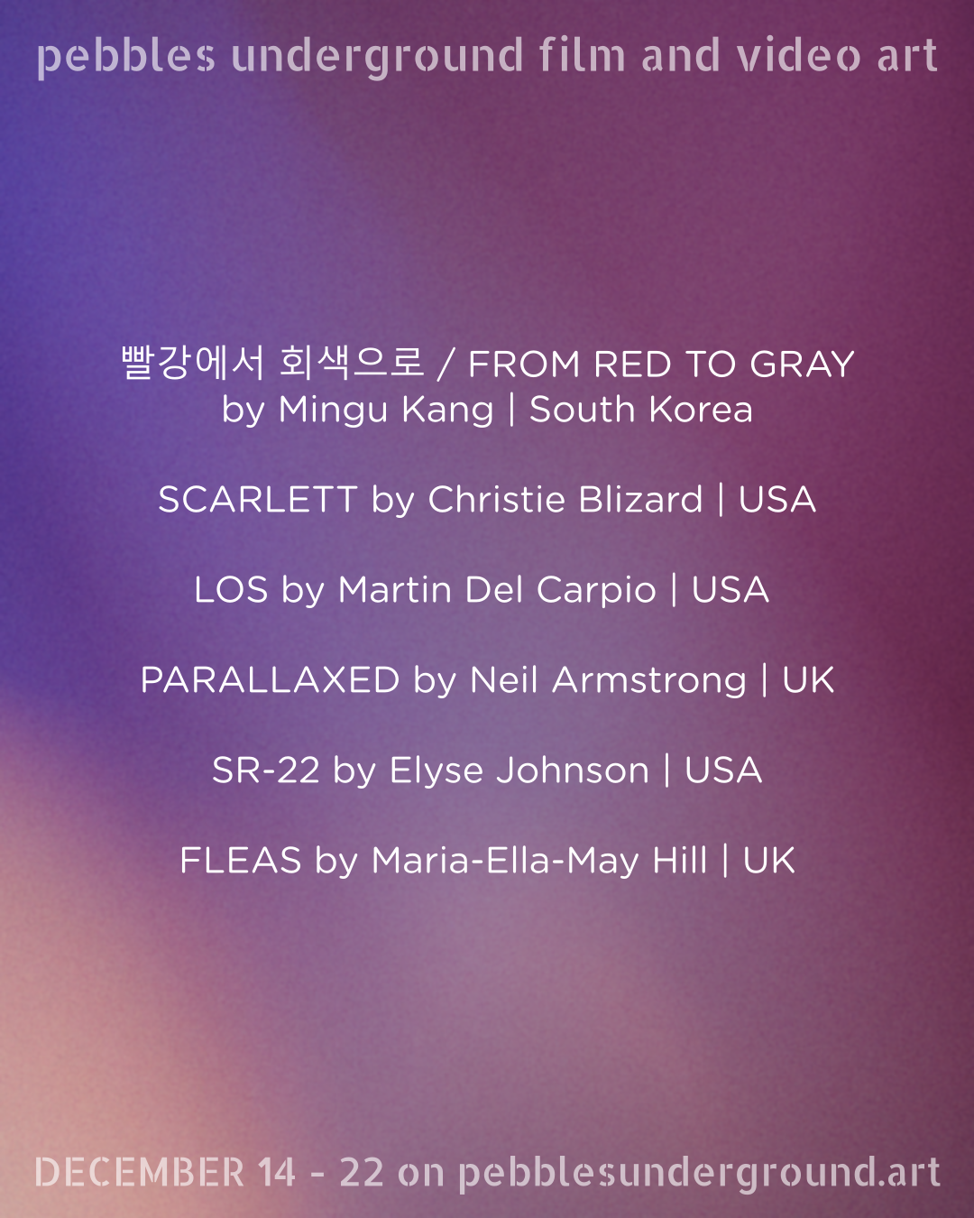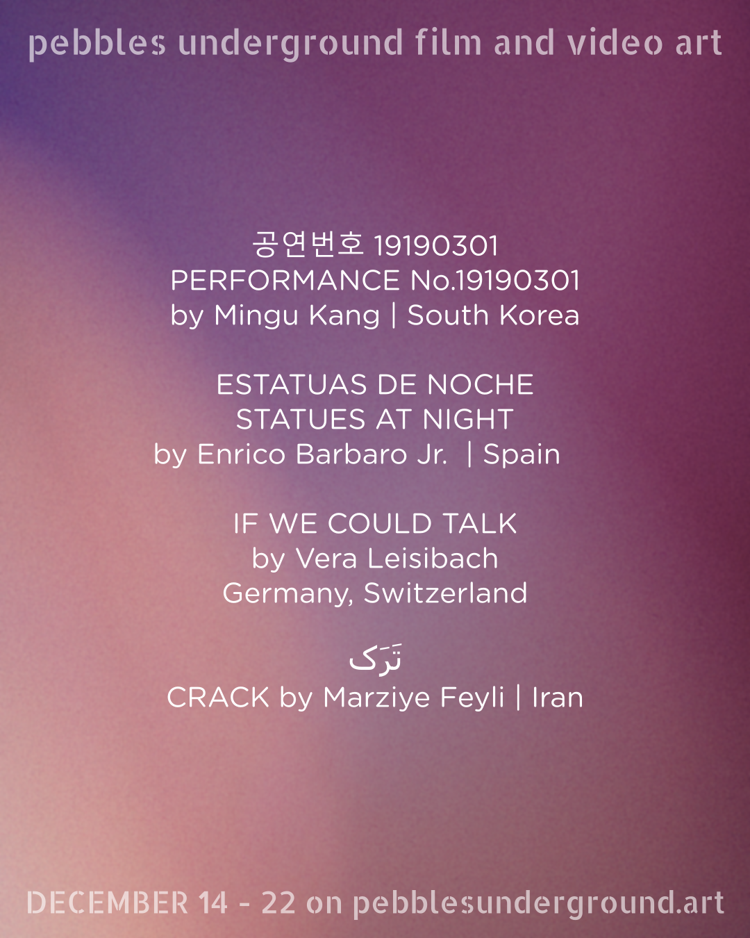 While our team is working hard to prepare the Winter 2025 screening on our website, take a look at the final official selection in our Winter 2025 edition comprising 58 films from 34 countries! On air December 14-22 on pebblesunderground.art, more info on programs coming soon!