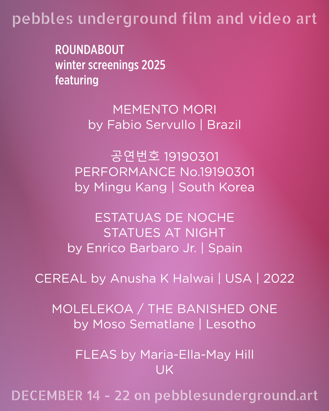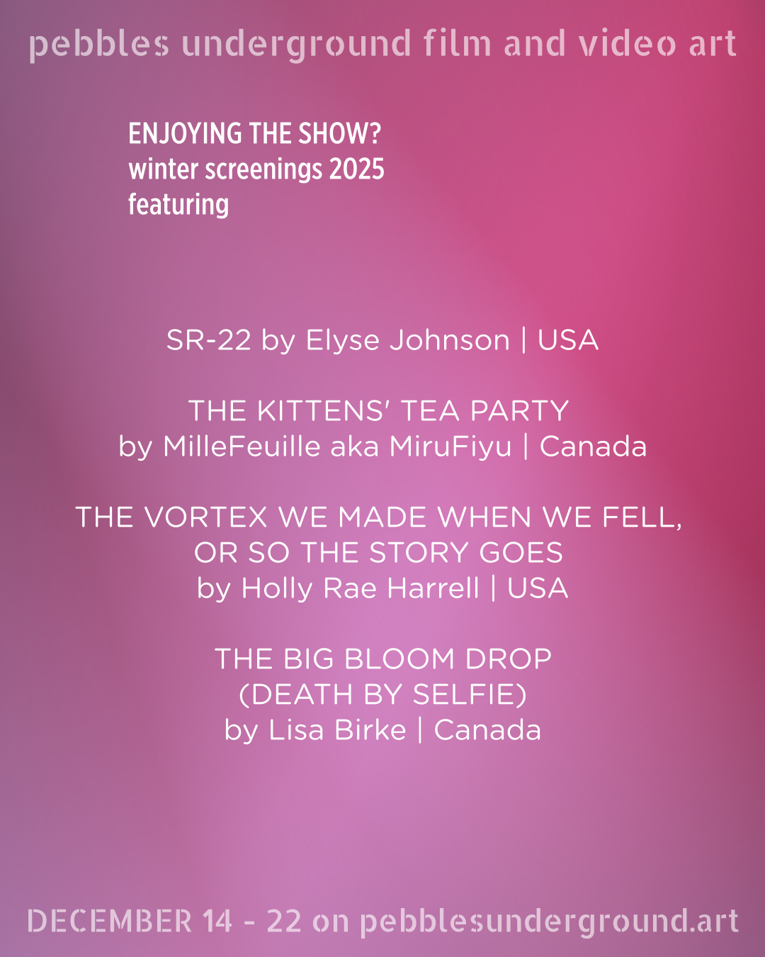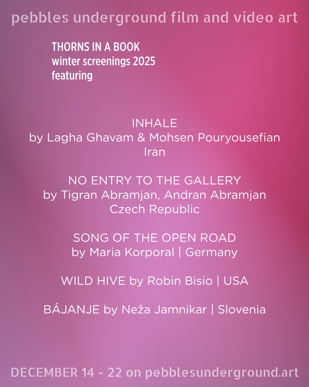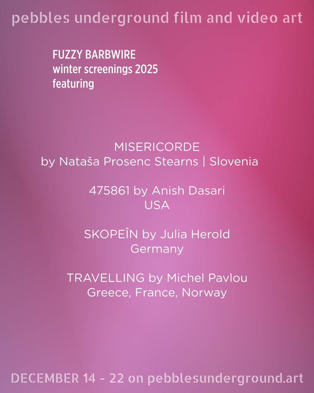 Pebbles Underground is focused on showcasing and promoting experimental, avant-garde, underground, and no-to-low budget projects by artist-humans from all over the world. Absurd, uncanny, witty, humorous, slow-video – all are welcomed, and loved. Pebbles Underground is an independent project not funded by any government or corporation, and we intend to keep it that way. Main source of funding is personal donations from humans organizing the project, who are artists themselves, and the main drive of the project is formed by the energy and involvement of the organizers, and the public.