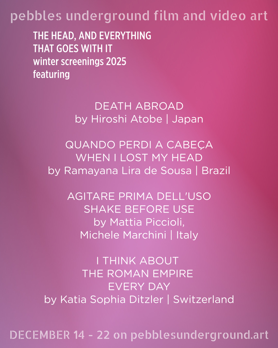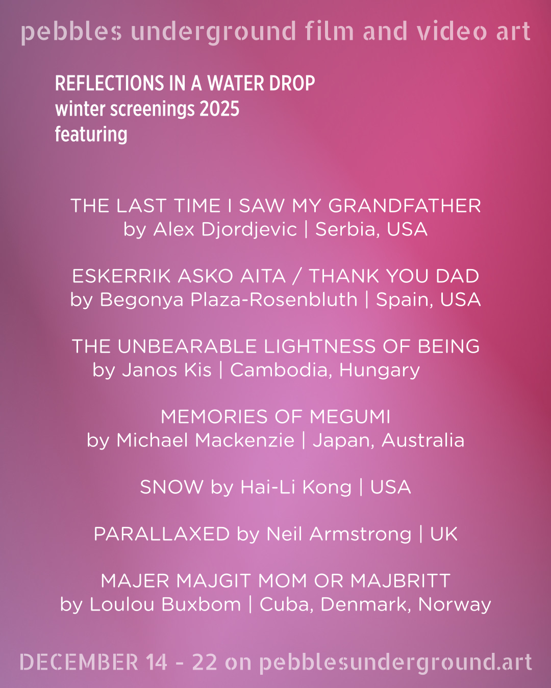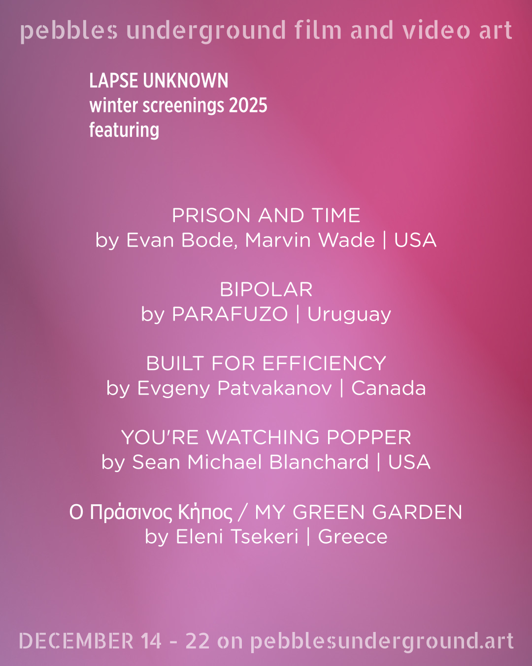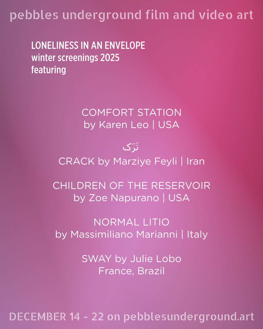 Pebbles Underground is focused on showcasing and promoting experimental, avant-garde, underground, and no-to-low budget projects by artist-humans from all over the world. Absurd, uncanny, witty, humorous, slow-video – all are welcomed, and loved. Pebbles Underground is an independent project not funded by any government or corporation, and we intend to keep it that way. Main source of funding is personal donations from humans organizing the project, who are artists themselves, and the main drive of the project is formed by the energy and involvement of the organizers, and the public.