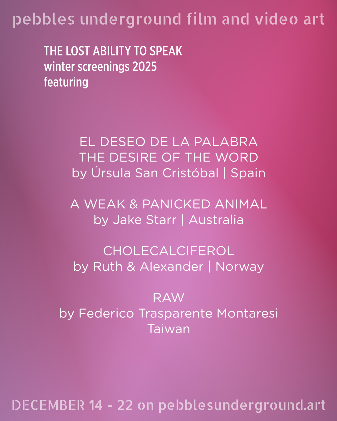 Winter Screenings 2025 feature experimental, surrealist, and underground cinema, documentaries of all types, essay films, screendance, video art, and animation. The programs resists fixed categories, moving fluidly between abstraction, documentary, and hybrid forms.